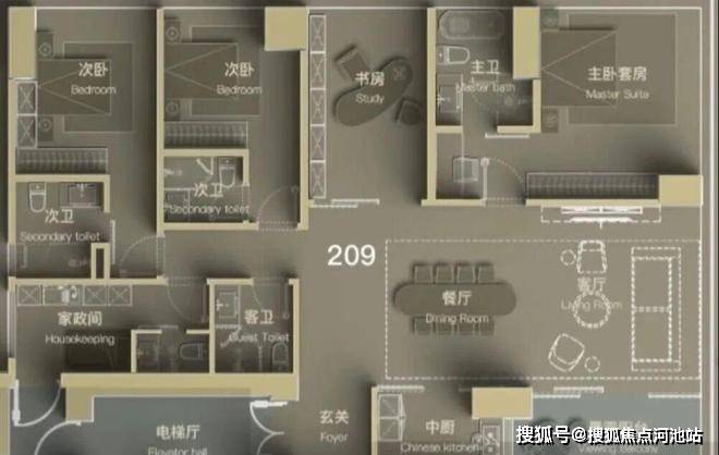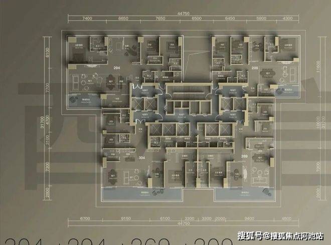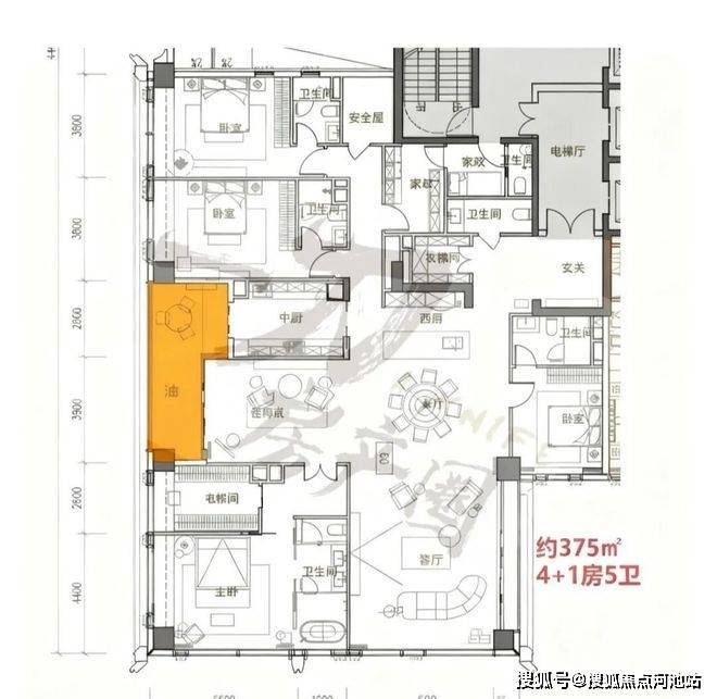 · 高区42F起(150-200米)是约370-375-403㎡4+1房五卫+家庭厅+家政套间;