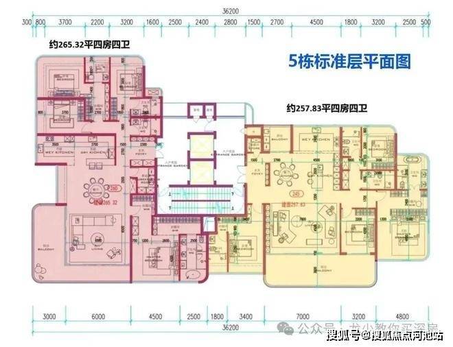 另外还有253-265平4房4卫的大平层豪宅,3套间+西厨。