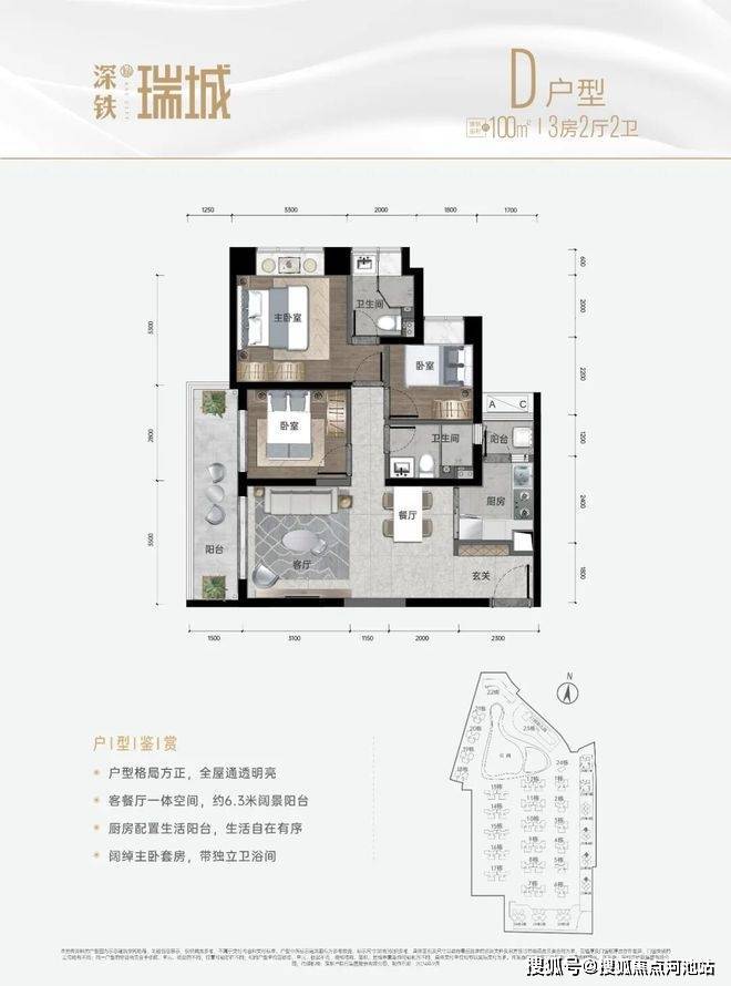 【户型面积】建面约96-100㎡舒居大三房