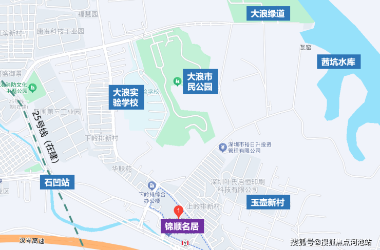 锦顺名居,北靠岭排围村,左邻大船坑市场,右近黄麻埔旧村,南边一路之隔接壤大浪中心区,与规划中的大浪时尚创意小镇相隔不远,特别距离华为在观澜拿下的大宗产业园占地76万㎡地块约6公里左右。