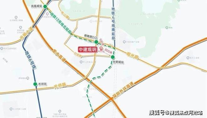 中建观玥名邸家门口就是13号地铁线“德雅路站”,以前的同观路站已经改名,最高时速100公里,预计2025年开通运营,1站可到光明城站,换乘6号线/光明城高铁站,3站可到石岩,7站到西丽,8站到留仙洞总部基地,11站到南山高新园。