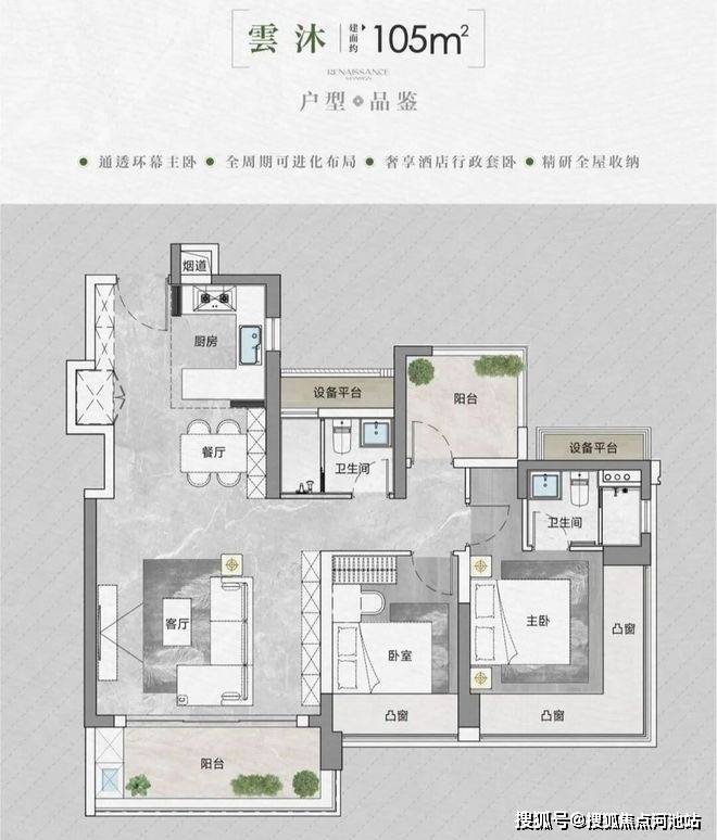 【建筑面积105㎡3+1房2卫】