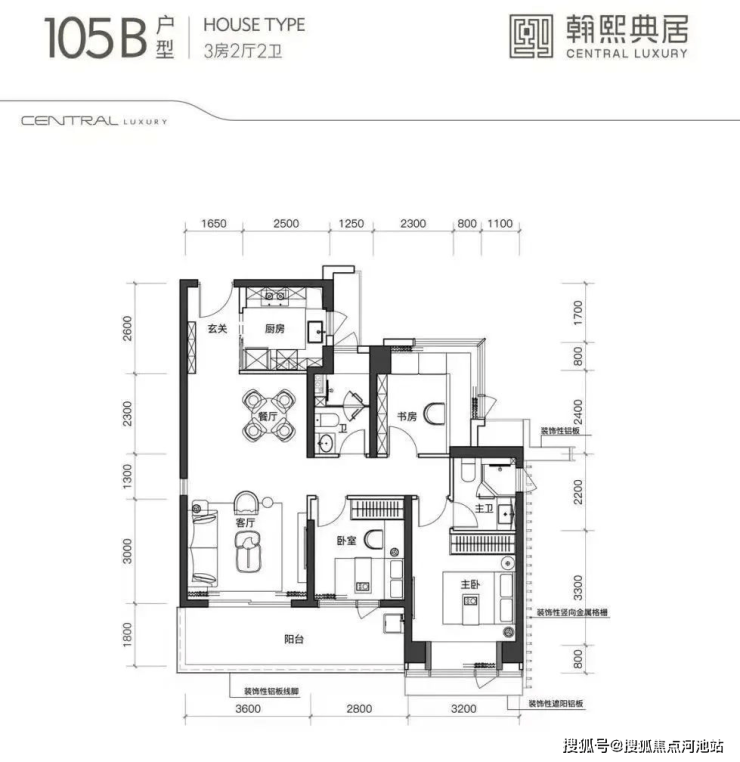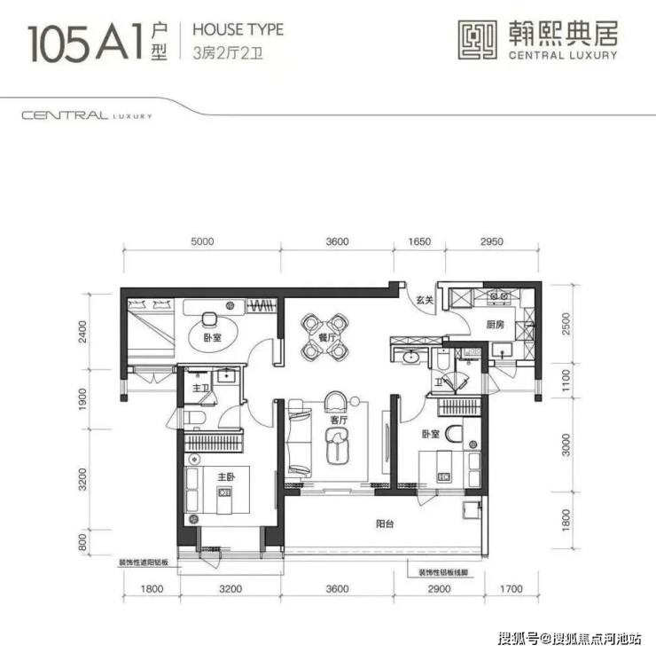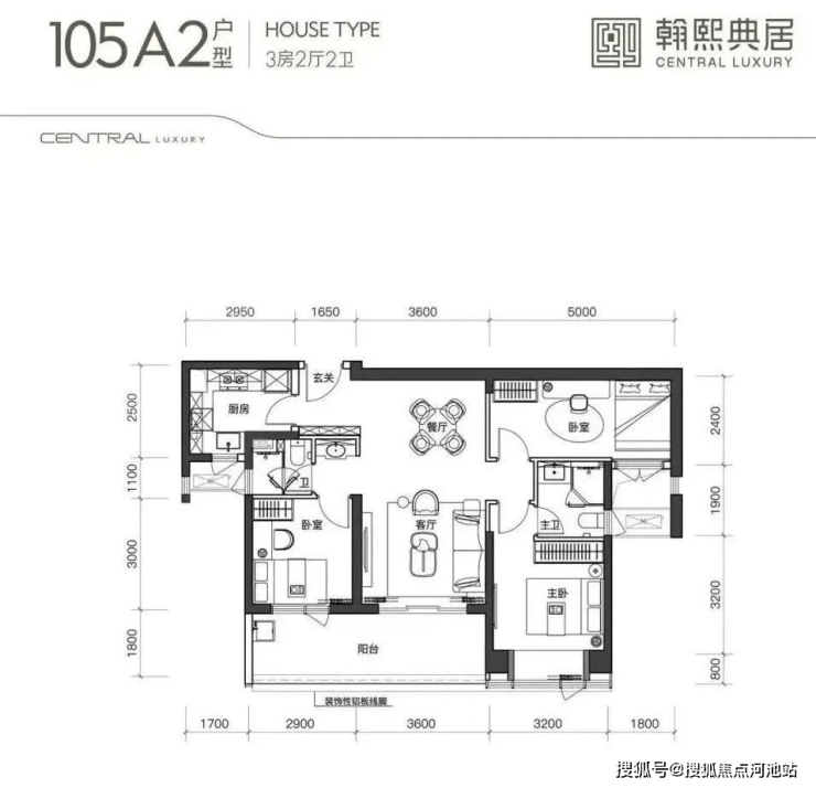 建面约105㎡的3房2厅2卫