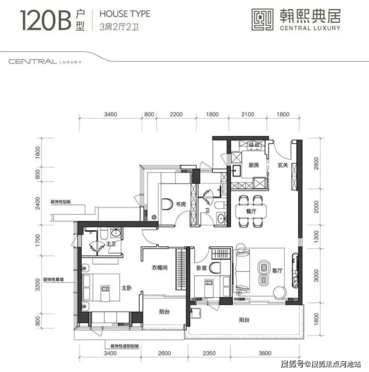 建面约120㎡的3+1房2厅2卫,
