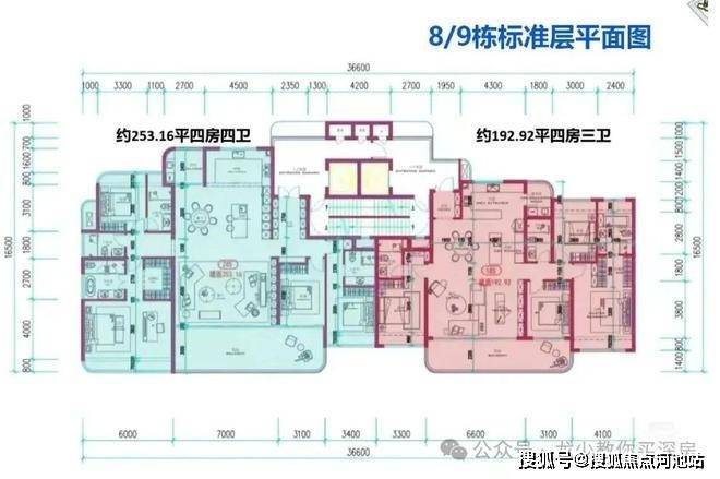 另外还有253-265平4房4卫的大平层豪宅,3套间+西厨。