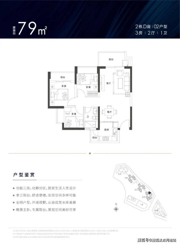 爆款78㎡三房:竖厅+三开间朝南,厨房带小阳台,总价300万出头。