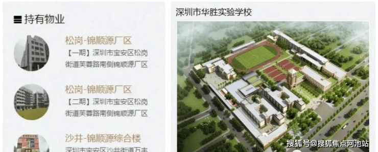 其中,房地产主要是以工业厂房租赁运营为主,位于松岗及惠州惠阳等地。教育业经营国有民办学校,深圳市华胜实验学校,位于宝安西乡。