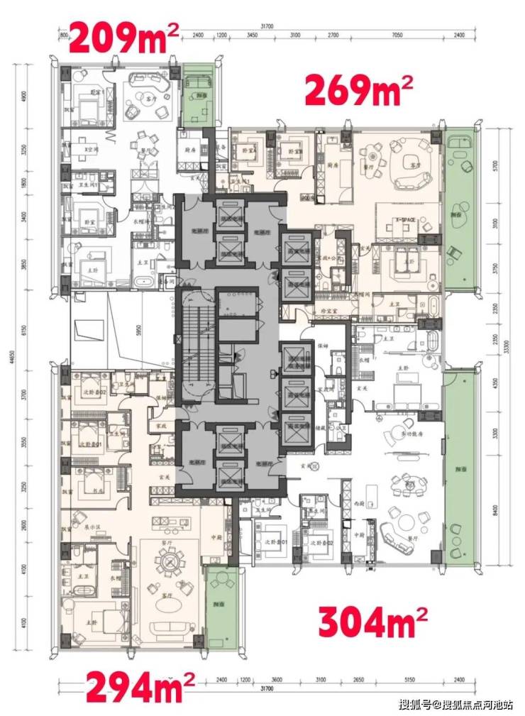 3️⃣户型面积209平以上都有保姆房+保姆梯。