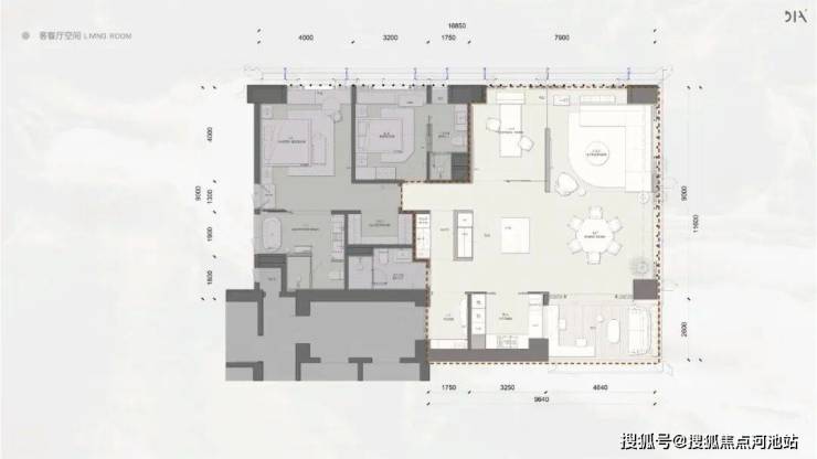 · 顶楼Penthouse约(1050/1100㎡)顶奢大平层