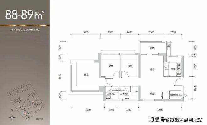 07户型89平米折扣后318-325万南北通透
