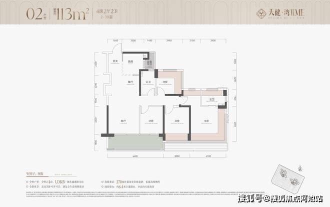 02户型,建面约113㎡,4房2厅2卫(下图)