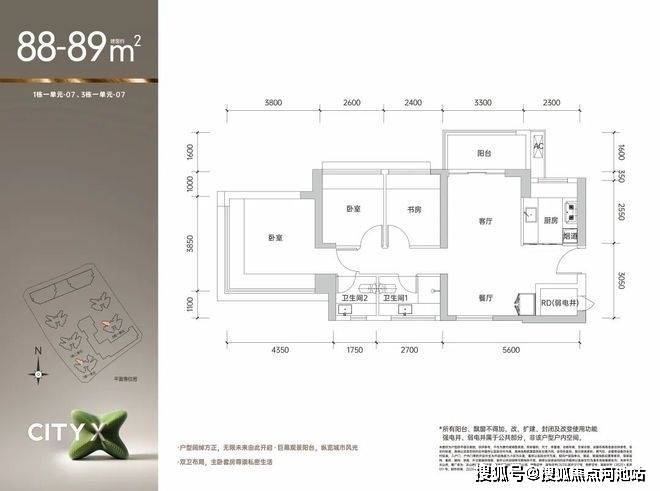王炸户型 约89㎡3+1房2厅2卫