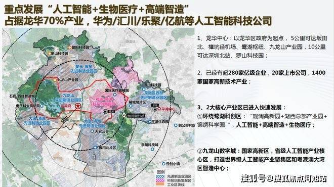 观澜占据龙华70%产业,鹭湖中心城与九龙山数字城双核驱动,聚焦人工智能、生物医疗等高新技术产业;
