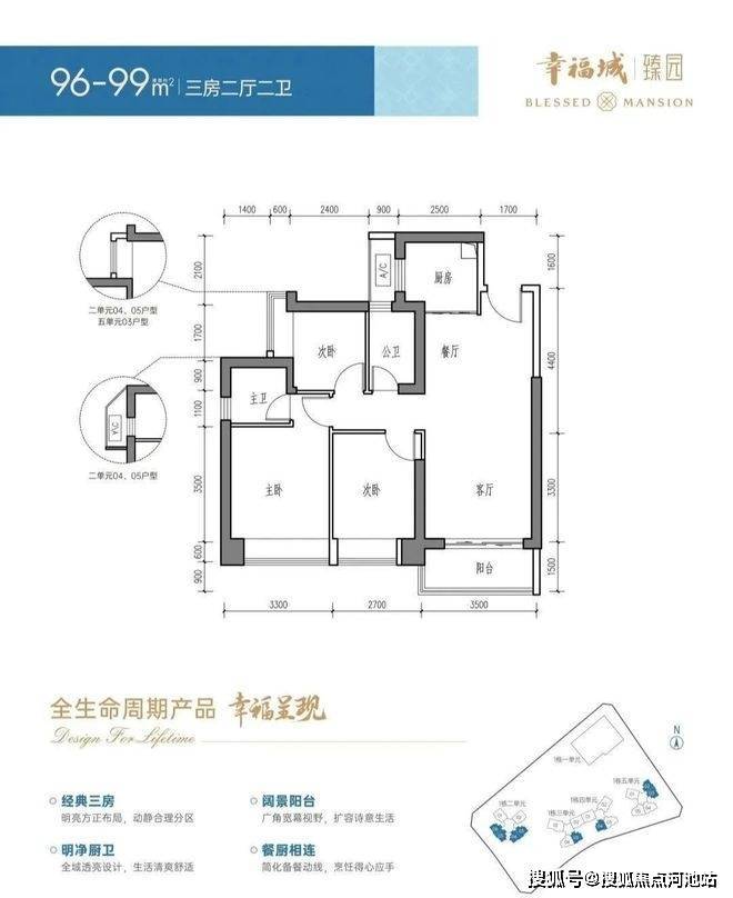户型上总体来看,中规中矩,也是市场非常常见的户型格局,但有一点是80%户型都做到朝南!