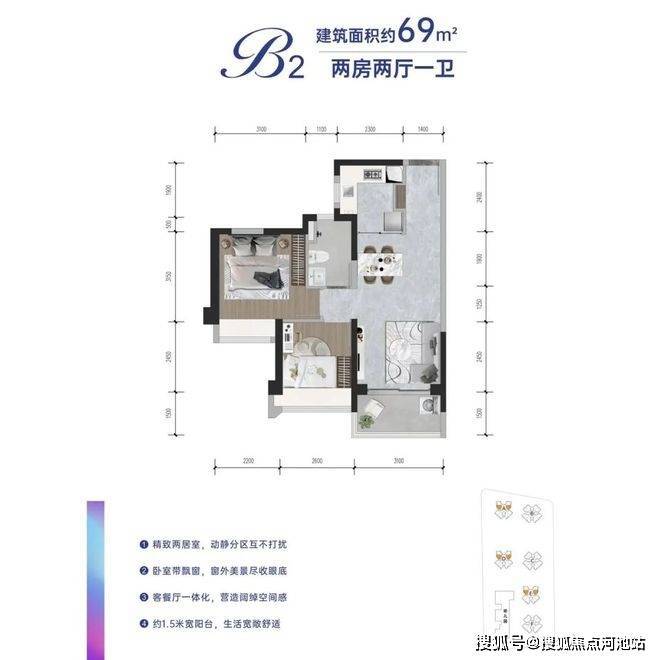 建面约69平2房精品样板间