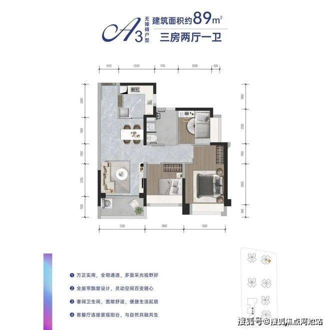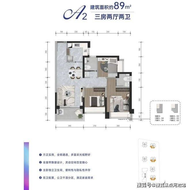 项目以商品房品质标准打造人才房,主推建面约69-89平的2-3房户型,且采用精装交付,品质感拉满。