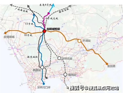 深圳地铁13号线,从深圳湾口岸向北到达公明,未来会与东莞5号线连接直达松山湖。
