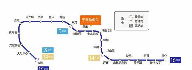 地铁交通方面,中海新都荟项目毗邻16号地铁线的“龙东站”,该线路自坪山田心起始,直达龙岗大运枢纽,为日常出行提供便捷选择。仅需两站,即可抵达坪山高铁站,轻松前往各地;而前往大运站也仅需11站,可在此换乘3/14号线,实现深圳全市范围内的快速通行。