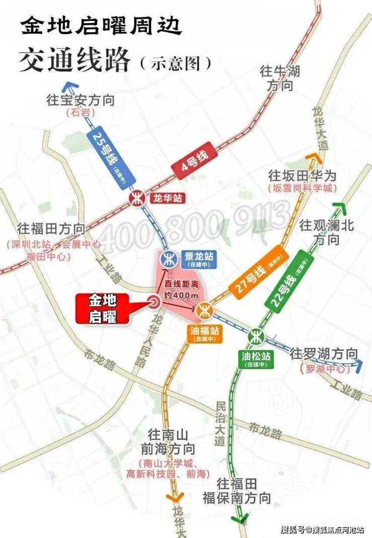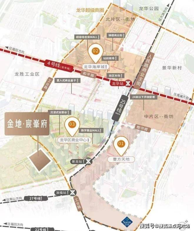 《金地启曜府》位于龙华民治工业路与人民路交汇处,壹城中心旁,22/25 号线"景龙站"约 300米。土地来源于龙华商业中心旧改。