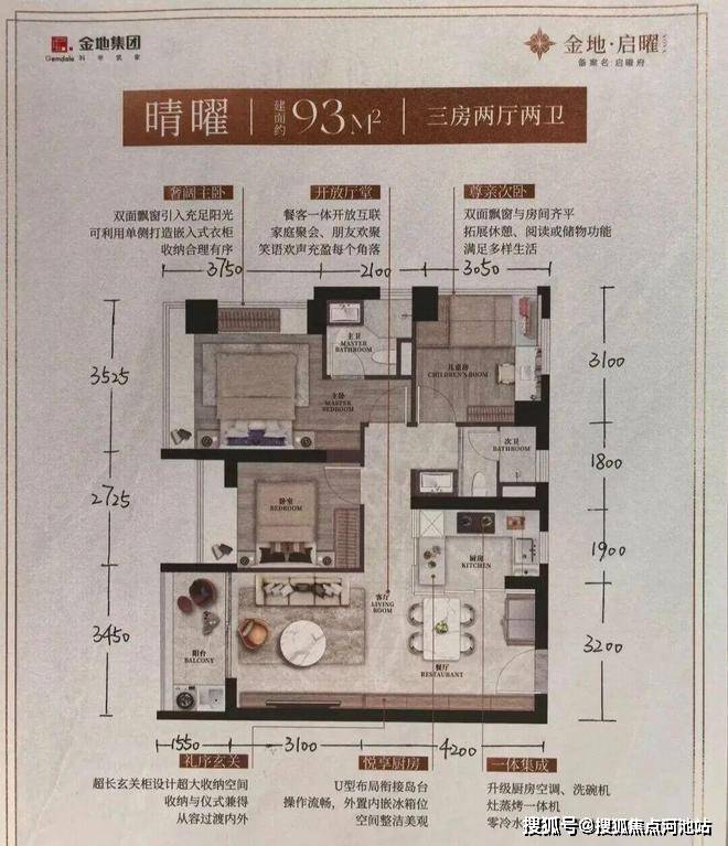 金地启曜的户型设计堪称“空间魔术”,93-130㎡三至四房均做到精装交付,得房率高达90%(含赠送),在新规楼盘中表现亮眼。每个户型都兼顾实用性与舒适度,细节拉满: