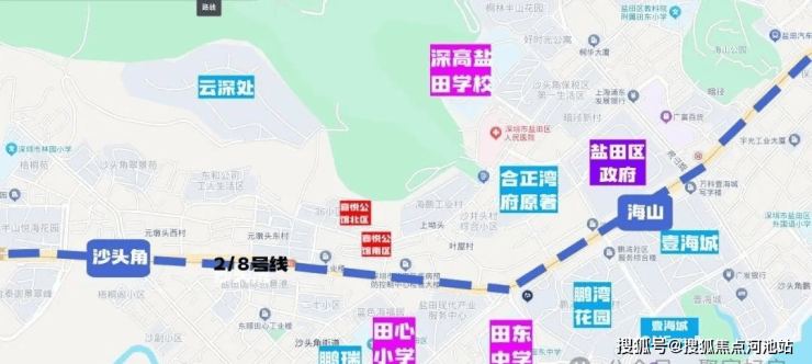 2、从买房必备3件套来分析,嘉悦公馆配套的是深高级盐田学校,也是四大名校,师资力量是没问题的,在整个盐田是属于数一数二的学校,距离约700米不到,上学通勤还算方便,最近的2/8号地铁线“海山站”跟“沙头角站”距离都在700米,盐田最大的壹海城购物中心距离800米-1公里左右,总体来看评分是非常不错的,在盐田绝对是上选。