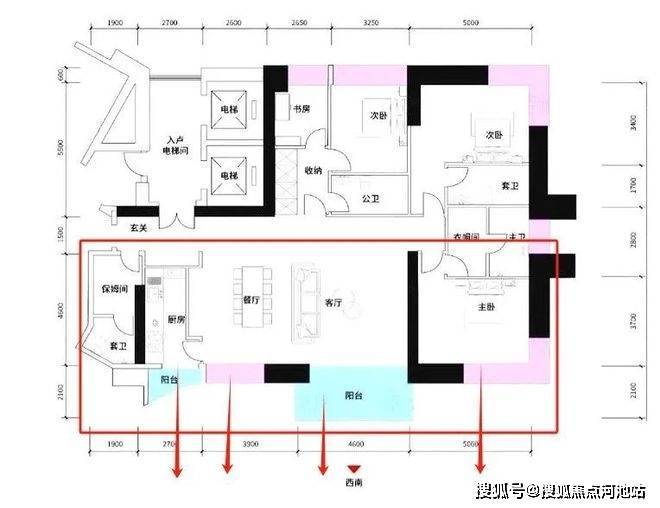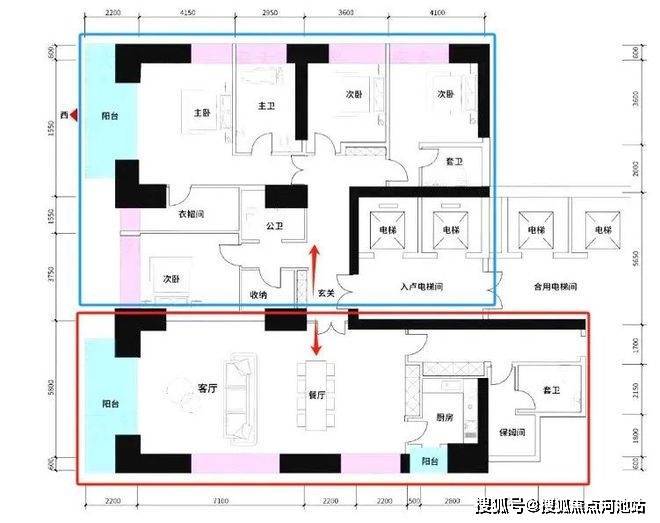 【约233㎡3+1房3卫】双梯入户,独立电梯厅,餐客大横厅贯通阳台,三面采光,主次卧尽享270°环幕视野,还有独立家政套间,西北朝向看名商和沙河高尔夫;