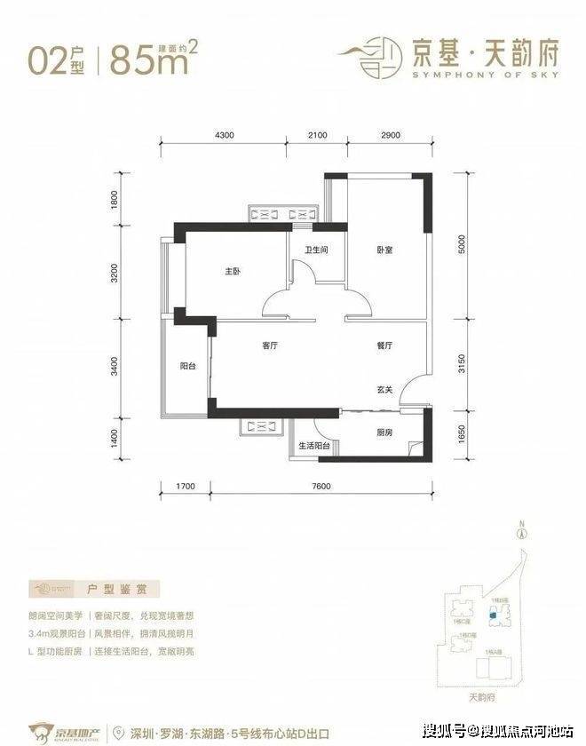 京基天韵府本次开盘将推出1栋B座,244套房源。面积有70-85㎡的2房1卫,105㎡的3房2卫,120-150-180㎡的4房2卫户型,备案单价6.6万/㎡。项目位于东湖街道,西临东晓路,北临东湖路,东临丹平快速路,距离5号线“布心站”300米,7号线“太安站”700米范围内,属于“双地铁”物业。