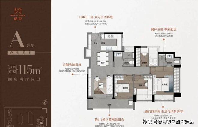 ◾115㎡奢阔4房有俩个户型仅可售85套,A户型东南向仅29套 ,B户型仅56套, 都是通透的四房,使用率92%