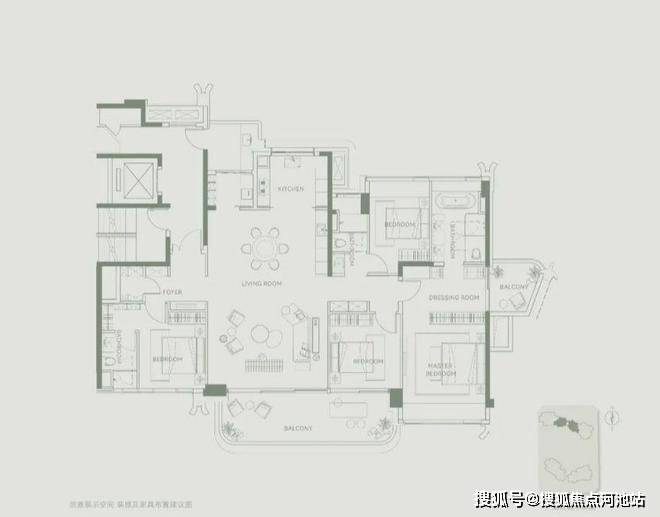 客厅转角打开,获取更多城市视野。7.2米挑高的客厅和阳台,将院墅生活搬到空中。采用特殊结构及幕墙开启设计,阳台窗可实现270°打开,最大限度保证客厅与花园的空间联动性与无界感。挑高阳台为植物生长提供足够空间,使阳台真正成为空中花园,承载居住者的情绪释放,让家成为能够安放身心的安稳之所。