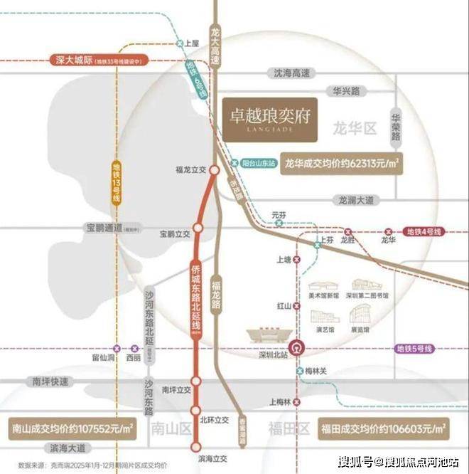 交通配套:卓越珺奕府构建了"双地铁+城际+主干道"的三维交通网络,极大提升了通勤便利性。距离地铁6号线阳台山东站约1.3公里,步行10-15分钟可达,4站直达深圳北站,6站可达福田中心区。2站到龙胜站可换乘深大城际铁路(在建中),预计2026年11月开通,3站可至宝安机场东,设计时速160公里,坪山至机场全程仅需40分钟。