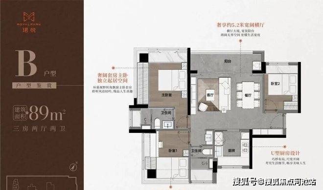 B户型西北向仅29套,大横厅户型,5.2的客厅开间,双龙抱珠户型,使用率98%