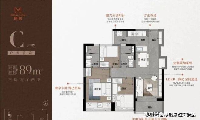 89平三房,总价578万起,有ABCDE户型,174套