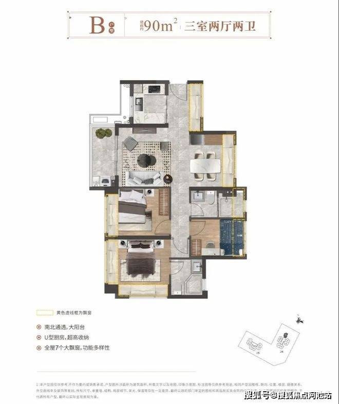 【户型】76㎡3房2厅1卫、90㎡3房2厅2卫