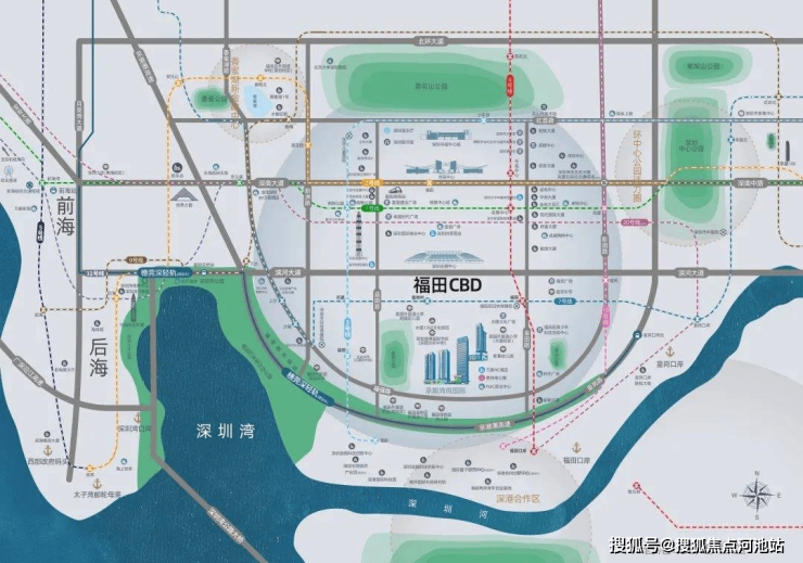 深圳福田CBD之上,立足绝对中心地位,集萃行政、文化、金融、交通、会展、购物、酒店、公园、住宅等九大醇熟配套。