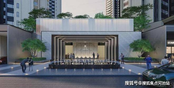轻奢酒店式落客大门:宽约23米气派门楼,艺术水景与铁冬青乔木