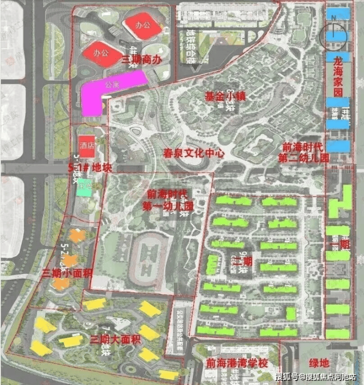 前海时代整个项目包括了写字楼、公寓、酒店、住宅,是一个超大型的综合体。一二期均已入伙,三期由3个地块组成【5-1(住宅公寓联合,有120㎡住宅户型)&5-2&7-2地块】。