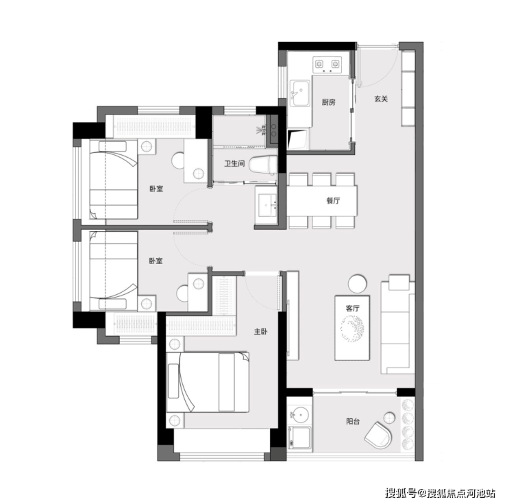 A户型|建面约70㎡两房两厅一卫