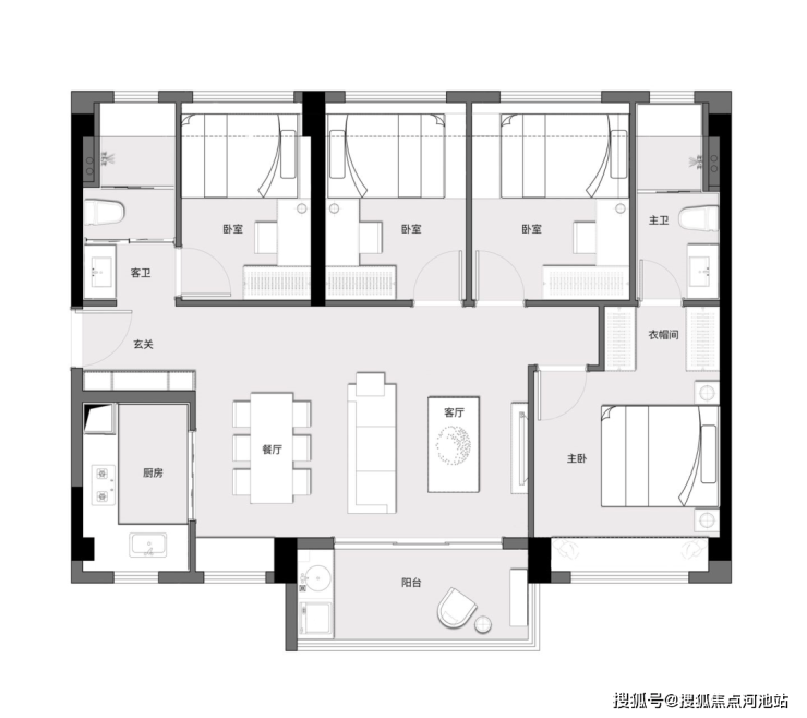 D户型 |建面约113㎡四房两厅两卫