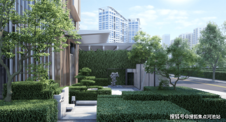 七大功能园林、风雨连廊:纯天然矿山原石纯手工打造,融合建筑与自然的界限,于中心处打造城市园林。