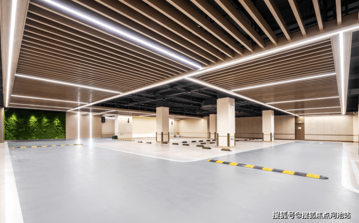 停车场:4.9m层高、贵州白木纹石材铺设的墙面、七道工序铺就的地面漆,业主回家进入小区的瞬间便能感受到回归自然的舒适。