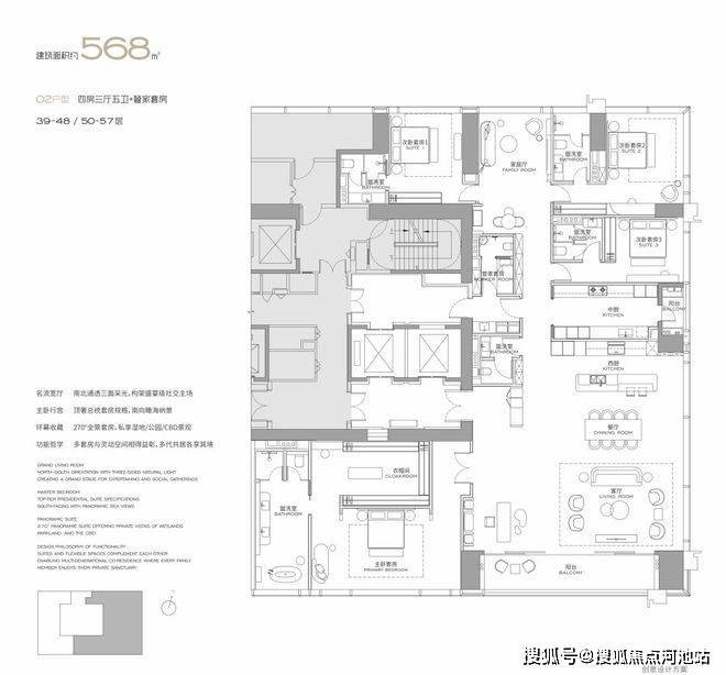 【梯户比】:5梯6户主力户型:公寓主力户型为303㎡、326㎡、404㎡、572㎡等大平层,最大户型达1000㎡