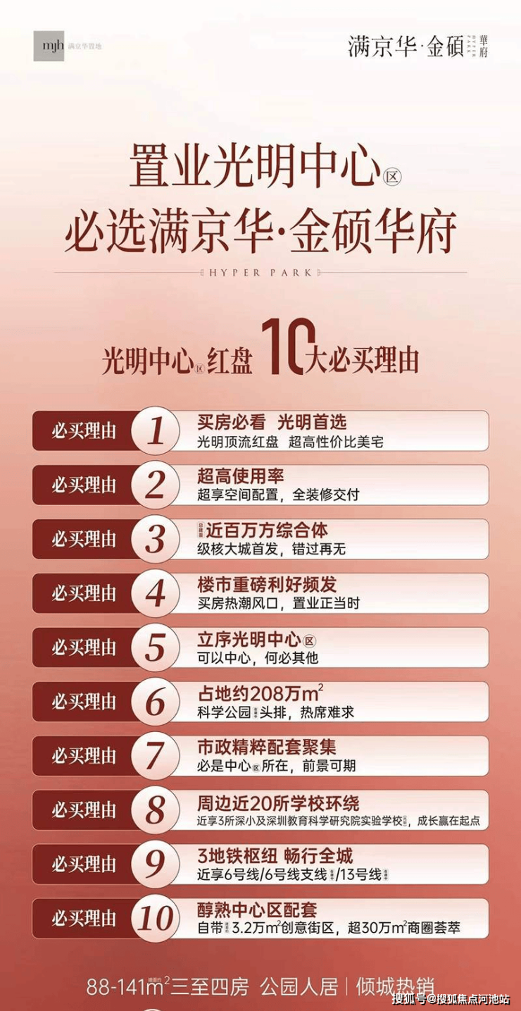 满京华金硕悦府,位于深圳光明区光明科学城“一心两区”的核心区域,紧邻占地208万平方米的科学公园,属于光明规划中“最宜居、居住板块最大”的片区。项目北侧与科学公园仅一街之隔,东、南侧为深圳小学光明学校狮山校区及初中校区,周边市政配套规划密集,如深圳科技馆新馆、国际美术馆等均在建设中,预计2026年前全面落成。
