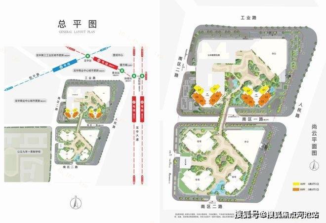 鸿荣源尚云花园整体分为一、二期,南北两个地块开发。