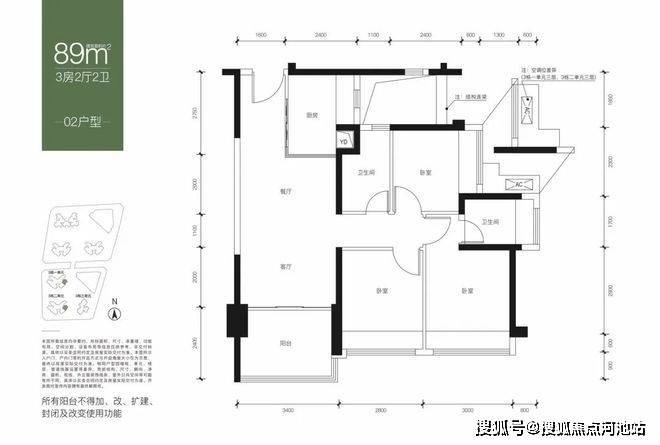 全新2期 震撼来袭 82-89㎡3房2卫 宝藏户型
