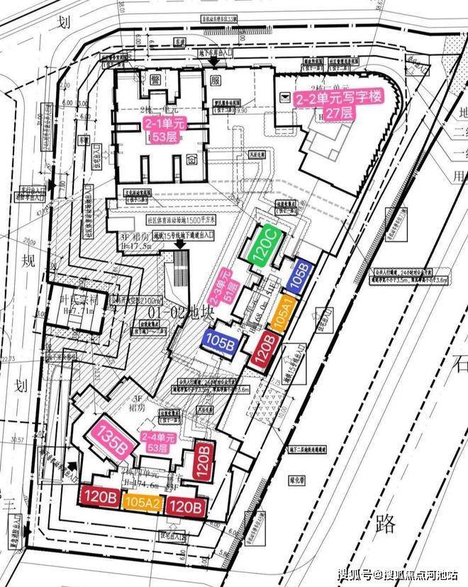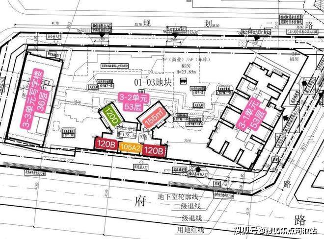 03地块分为三个单元,3栋一单元住宅为55层,3栋二单元住宅为55层,3栋三单元写字楼为36层,项目容积率为11.44,总建筑面积为176659.20平方米规划住宅建面约7.65万㎡,商业建面约1.5万㎡,办公面积约0.6万㎡,酒店约1.9万㎡。项目规划1120套(回迁981套+可售139套),停车数1019个