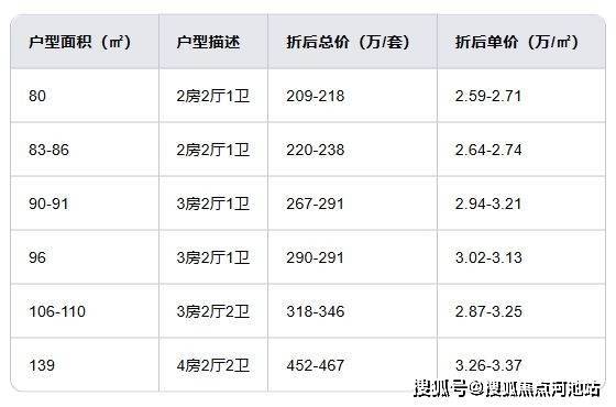 岗宏翰林汇2期部分户型的折后价格区间: