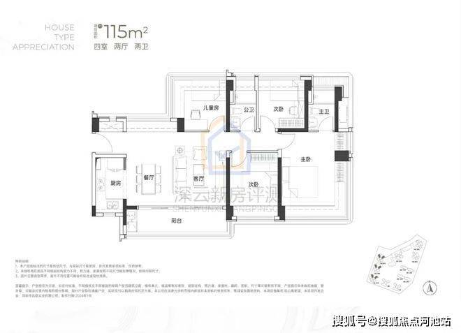 项目整体面积段为95-110-115-138㎡的3-4房。