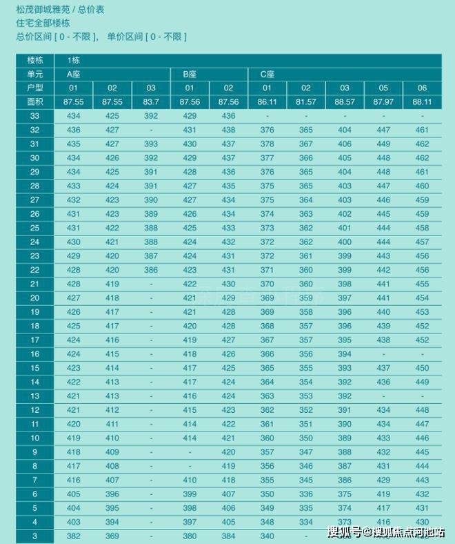 松茂御城住宅户型价格: