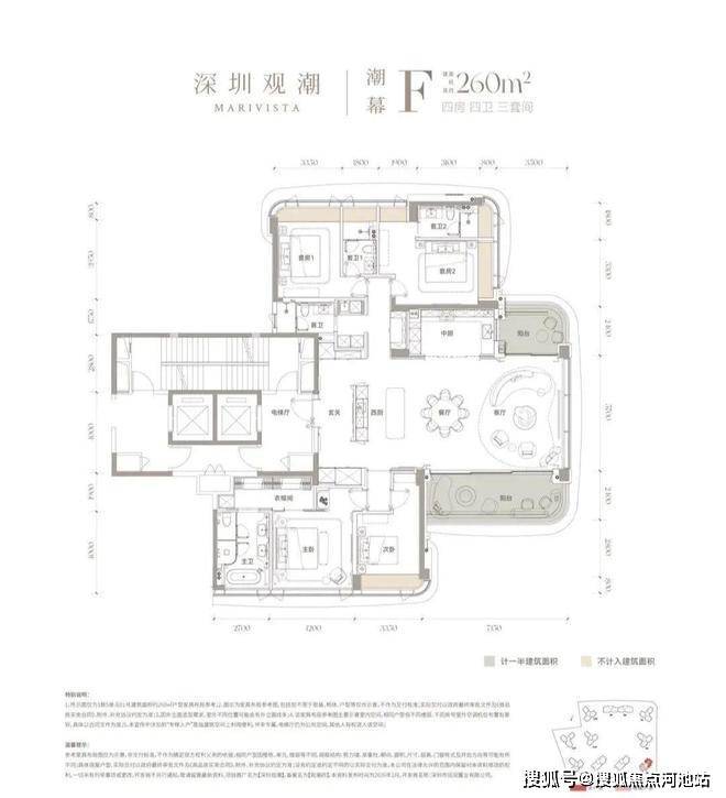 深圳观潮府,188㎡横厅双阳台设计,可灵活拓展空间,高端改善优选好房