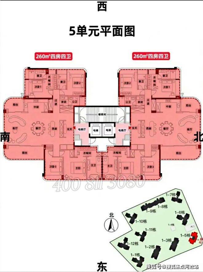 5单元:21层,2梯2户, 建面约260㎡,还有1套500㎡顶复
